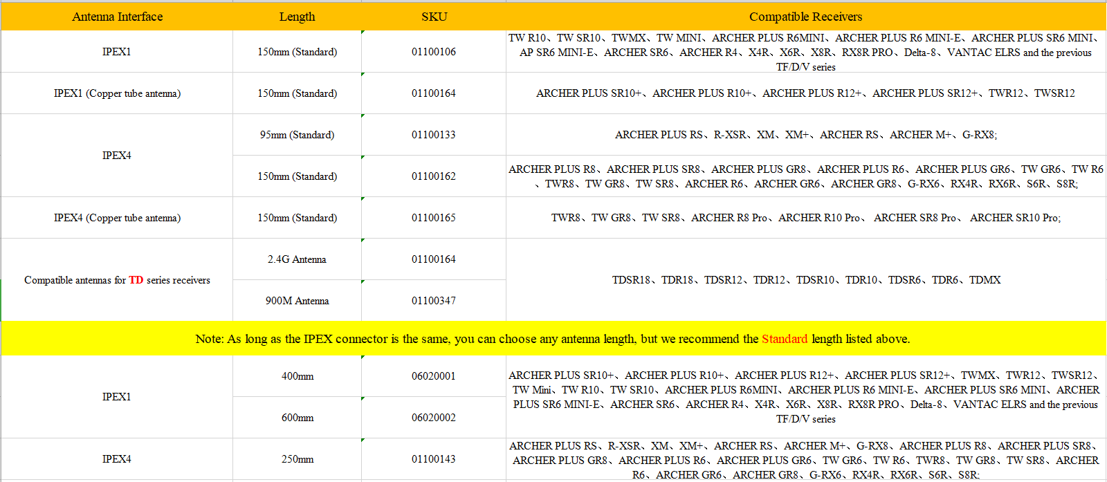 - For 2.4GHz receiver: TD MX、TD R6、TD R10、TD R18、TW MX、Archer Plus R10+、Archer Plus SR10+;