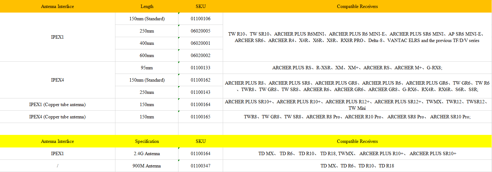 FrSky Receiver Antenna— IPEX1_250mm, Dipole Antenna, 2.4GHz