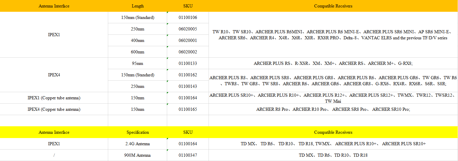 FrSky Receiver Antenna—IPEX1_150mm, 2.4GHz, Dipole Antenna for TD MX、TD R6、TD R10、TD R18、TW MX、Archer Plus R10+、Archer Plus SR10+;